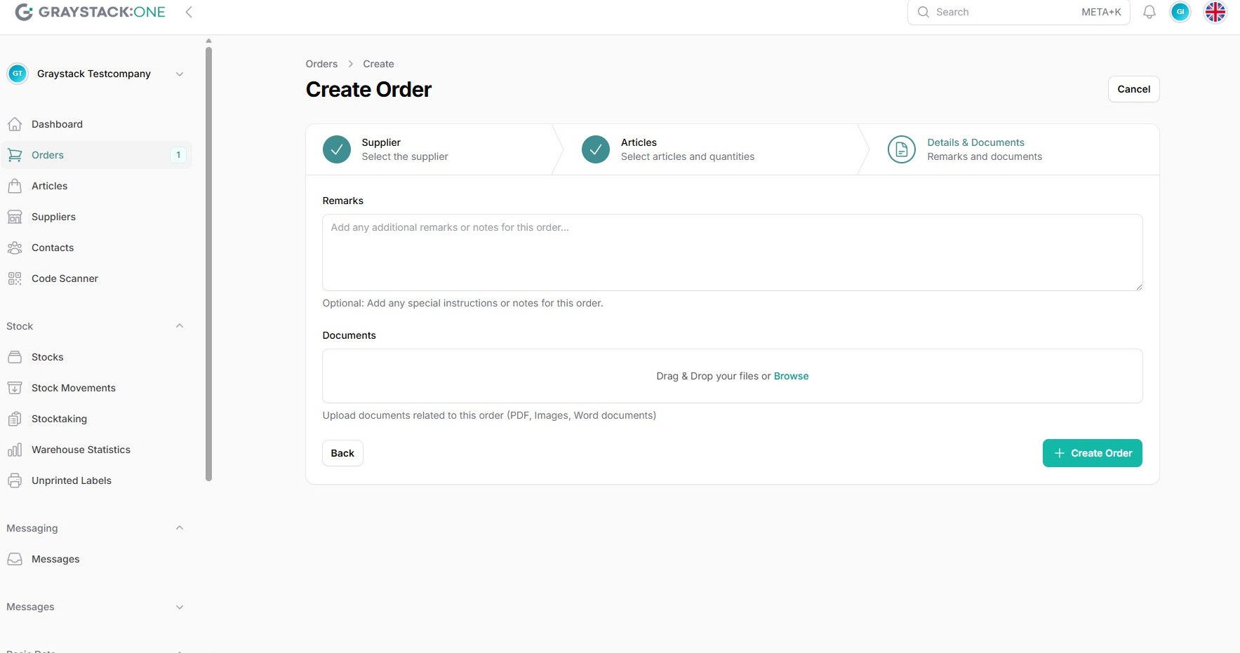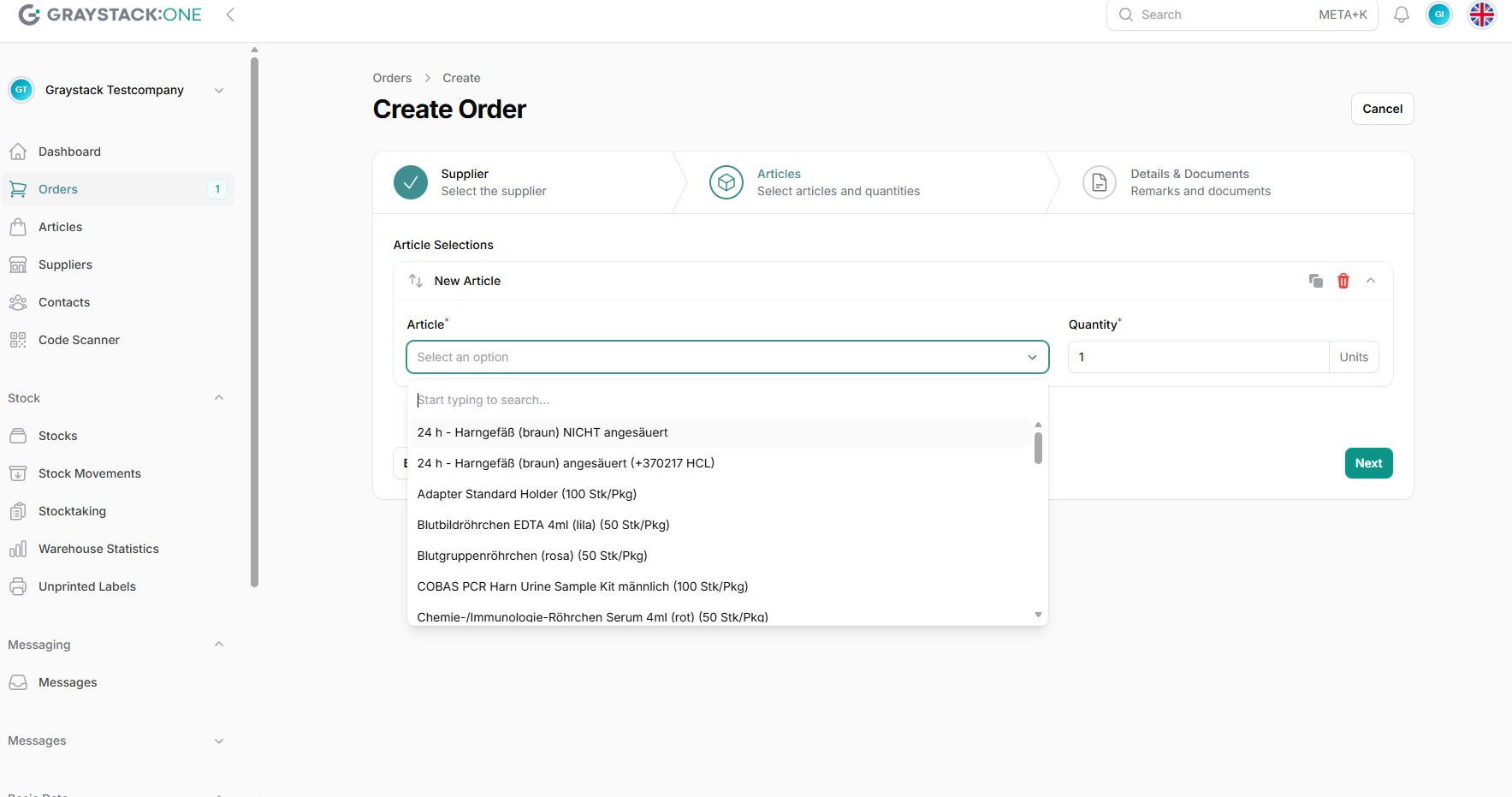In Graystack:One, orders can be created in various ways to make the ordering process efficient. This article outlines the steps required to create orders.