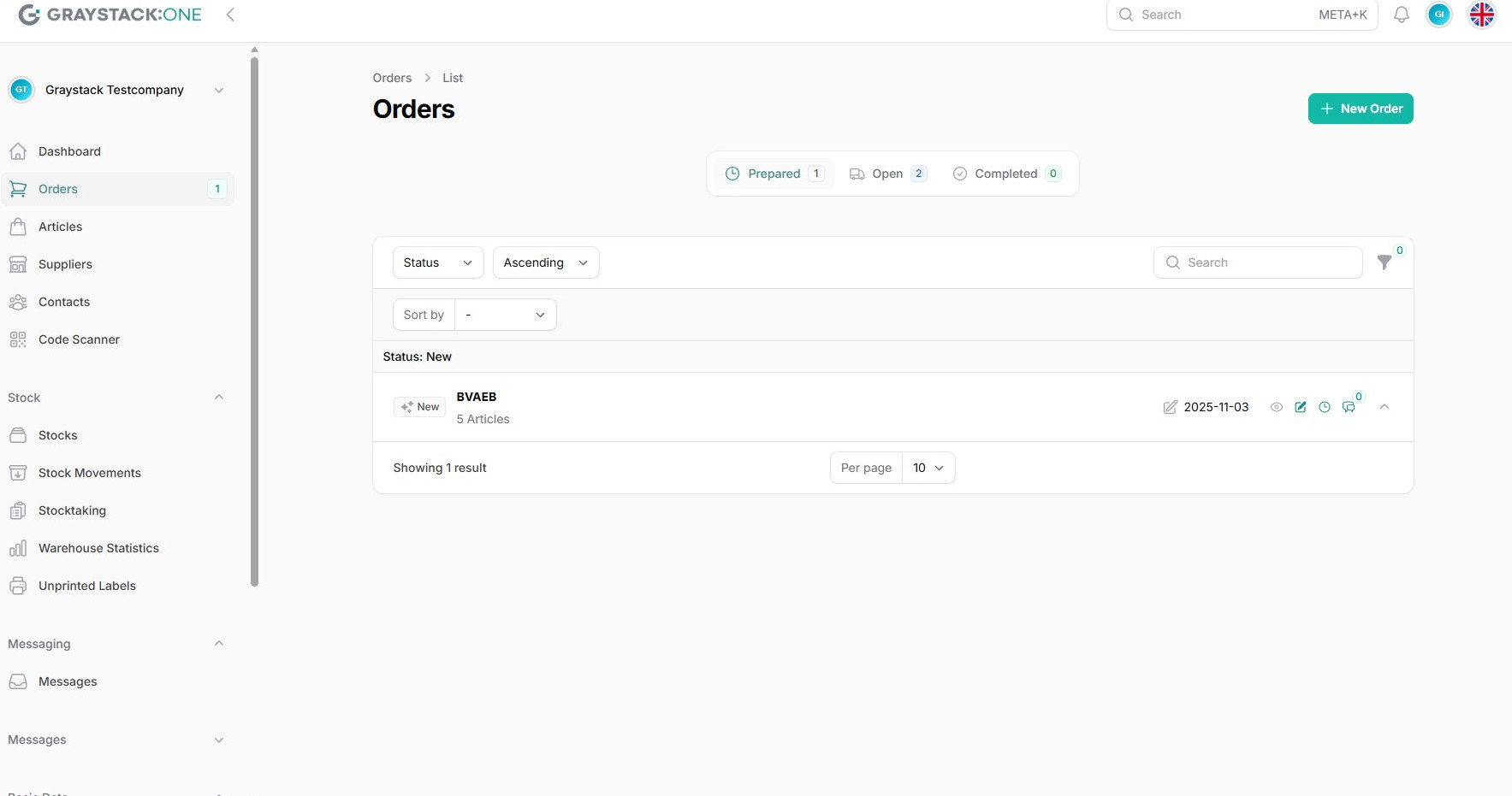 To create an order, navigate to "Orders" in the main menu. Here you will find an overview of all existing orders.